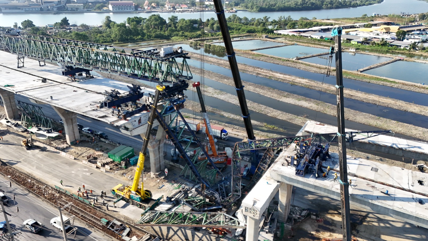 ปัจจุบันภาพรวมการทำงานยังคงดำเนินการไปอย่างต่อเนื่องตามขั้นตอนและเป็นไปตามแผนที่กำหนดไว้ โดยทีมวิศวกรสำนักก่อสร้างสะพาน กรมทางหลวง ร่วมกับทีมวิศวกรจากบริษัท อิตาเลียนไทย ดีเวล๊อปเมนต์ จำกัด (มหาชน) ได้ระดมเครื่องจักรหนักเป็นเครนขนาด 550 ตัน จำนวน 2 คัน เพื่อยกหิ้วชิ้นส่วนโครงสร้างเหล็กขนาดใหญ่ลงมาจากพื้นที่ปฏิบัติงานอย่างเป็นระบบ สรุปผลการดำเนินงานถึงค่ำวันนี้ (17 มกราคม 2569) ทีมวิศวกรได้ดำเนินการตัดแยกและยกชิ้นส่วนโครงสร้างเหล็กขนาดใหญ่ต่อเนื่อง ทำให้การรื้อถอนสะสมรวมเป็นร้อยละ 50