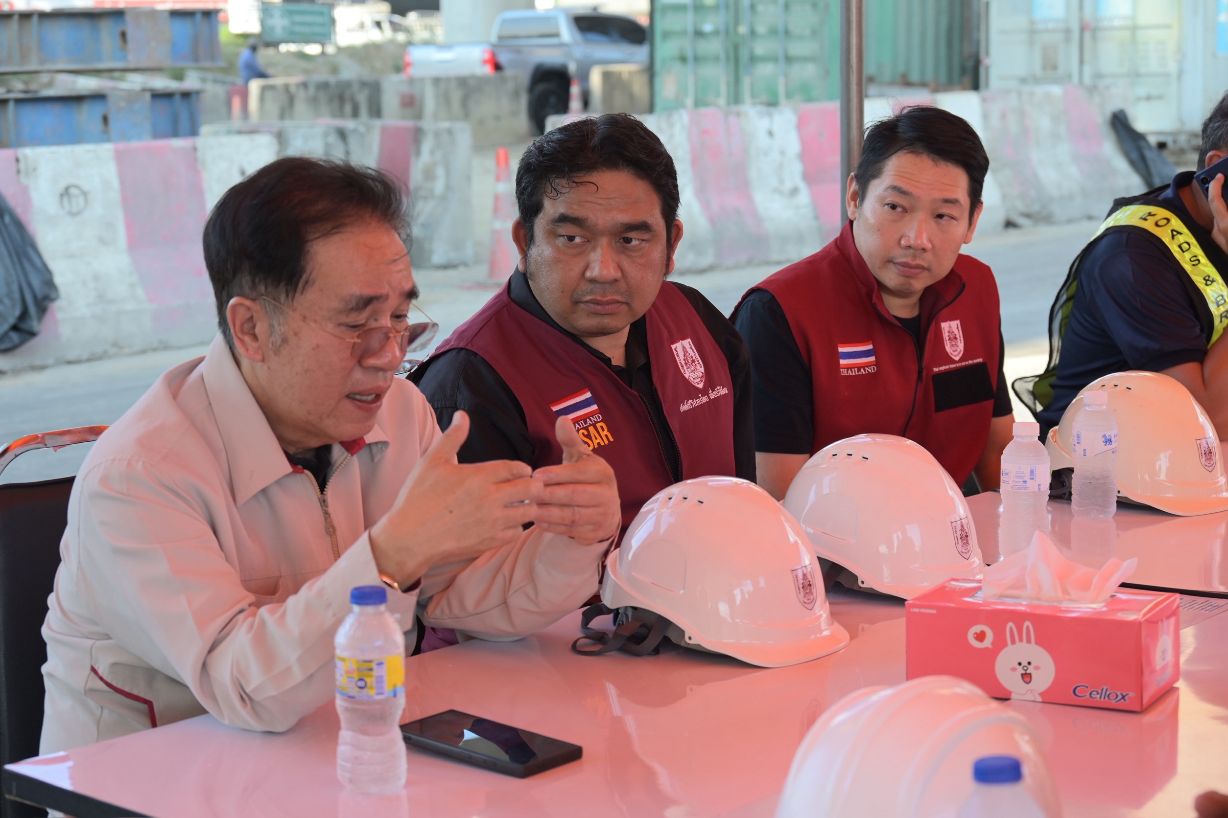 ทั้งนี้ การดำเนินการดังกล่าวเป็นไปตามมาตรฐานวิศวกรรมความปลอดภัย โดยชิ้นส่วนที่ถูกตัดแยกจะมีการคำนวณจุดสมดุลในการยกหิ้วอย่างละเอียด เพื่อไม่ให้ส่งผลกระทบต่อโครงสร้างส่วนที่เหลือและพื้นที่โดยรอบ โดยเมื่อเวลา 15.00 น. ของวันนี้ อธิบดีกรมทางหลวง พร้อมด้วยวิศวกรใหญ่ และทีมวิศวกรกรมทางหลวง ได้ร่วมประชุมร่วมกับ รศ.เอนก ศิริพานิชกร นายกวิศวกรรมสถานแห่งประเทศไทย ในพระบรมราชูปถัมภ์ (วสท.), รศ.ดร.ภาณุวัฒน์ จ้อยกลัด ประธานสาขาวิศวกรรมโยธา วสท. และ ดร.พุทธิพงศ์ หะลีห์รัตนวัฒนา ประธานคณะอนุกรรมการสาขาวิศวกรรมโครงสร้างและสะพาน วสท. รวมถึงทีมวิศวกรจากบริษัท อิตาเลียนไทยฯ ณ จุดบัญชาการเหตุการณ์ บริเวณหน้างาน พร้อมทั้งได้ลงพื้นที่เพื่อติดตามและประเมินความปลอดภัยในการทำงานอย่างใกล้ชิด