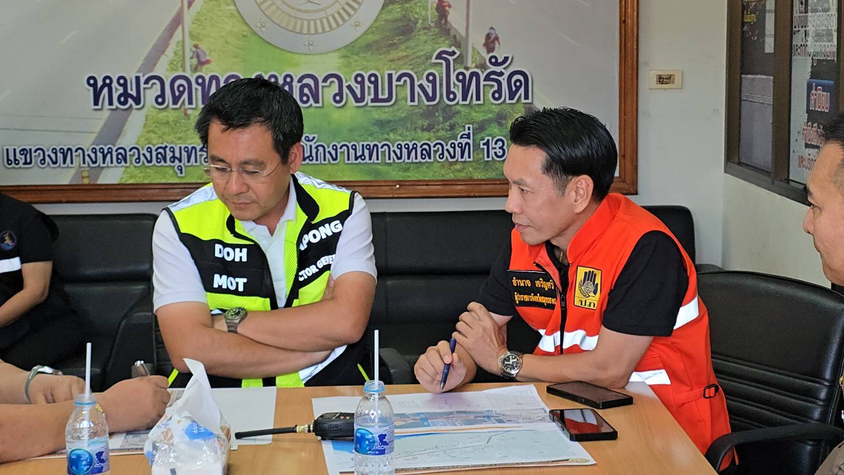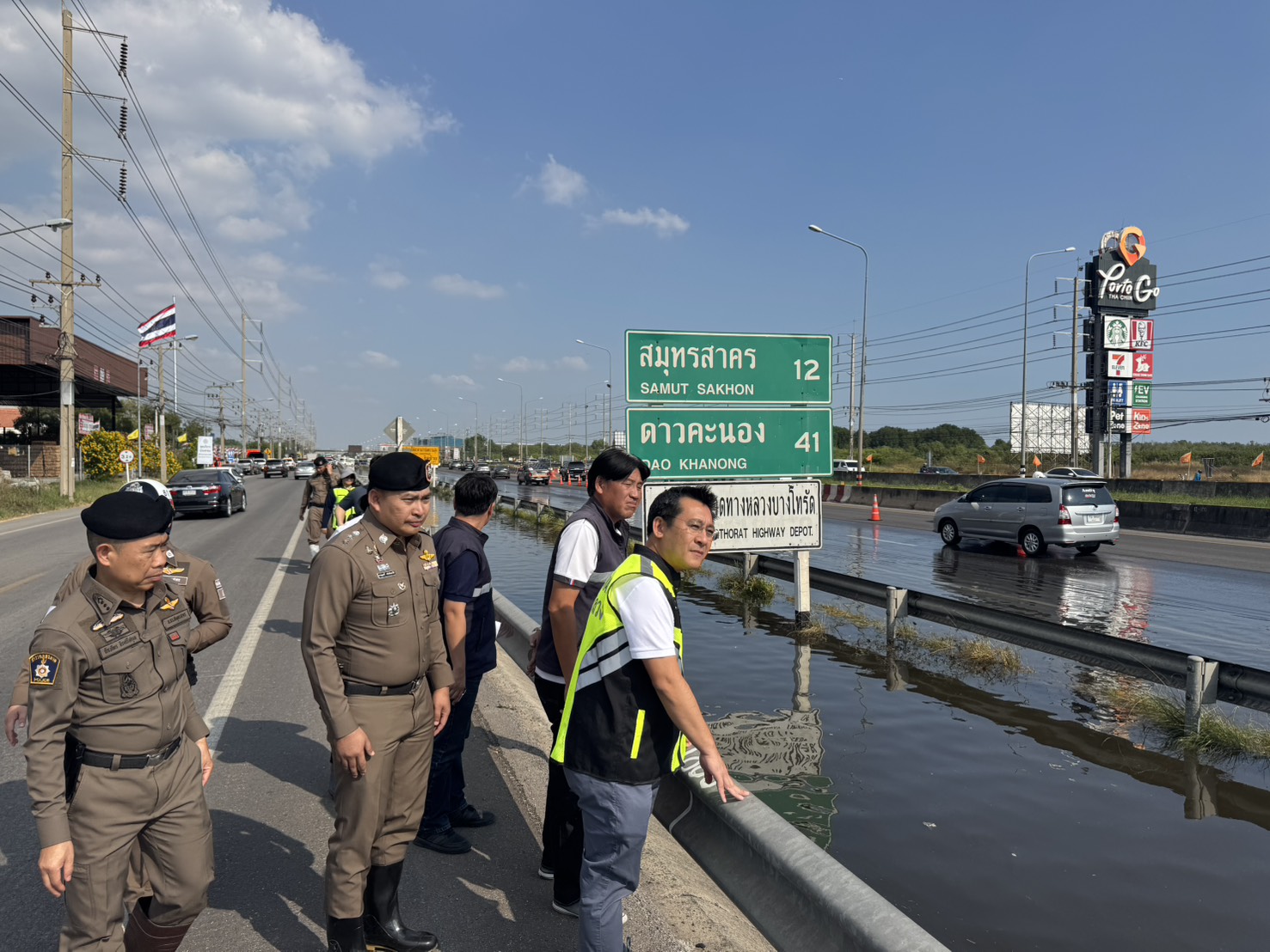กรมทางหลวงจับมือจังหวัดสมุทรสาคร รุดแก้ปัญหาน้ำหนุนท่วมพระราม 2 บูรณาการบริหารจัดการน้ำ-จราจรขาเข้า กทม. ตลอด 24 ชม.