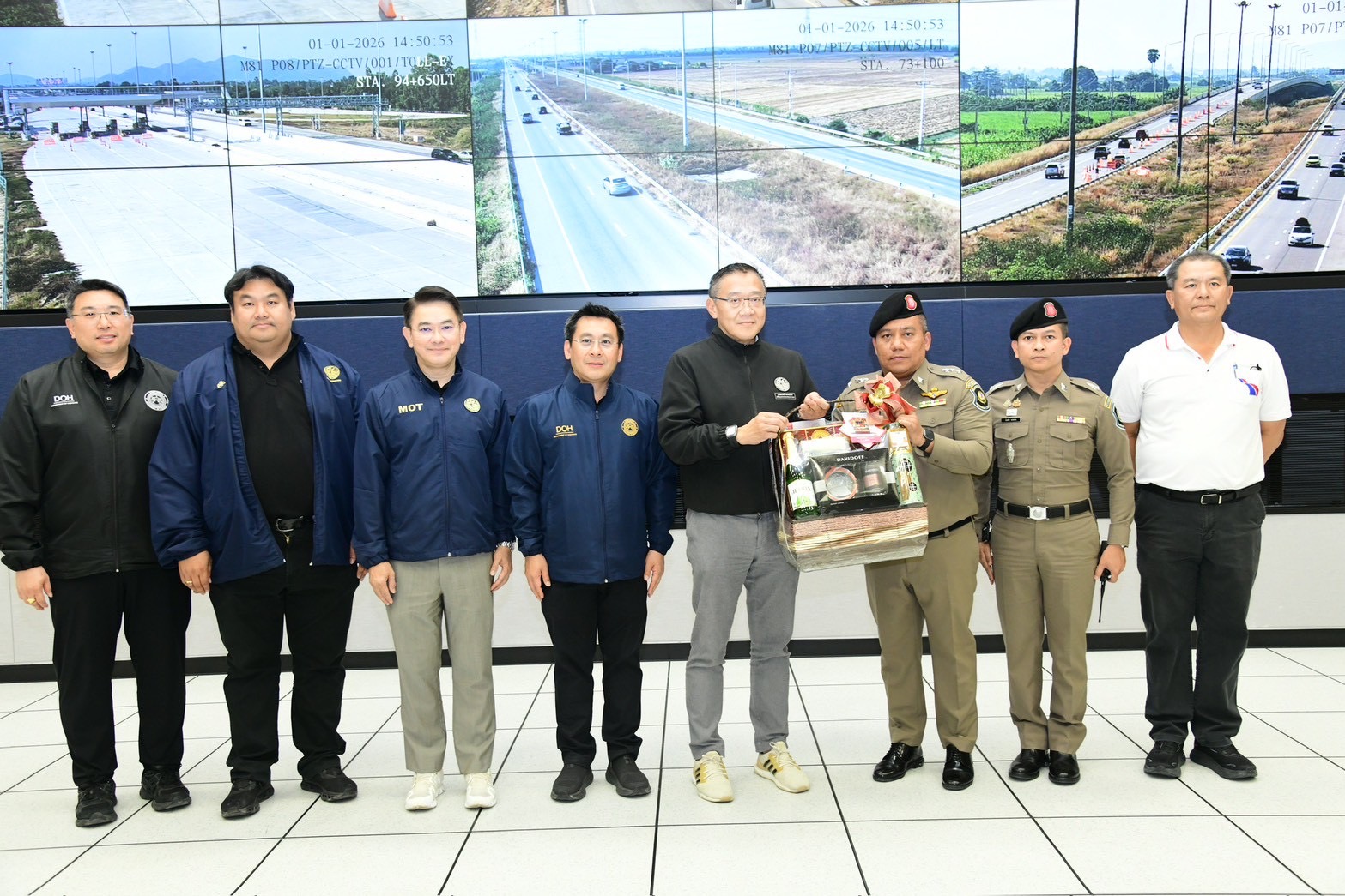 วันนี้ (1 มกราคม 2569) – นายชยธรรม์ พรหมศร ปลัดกระทรวงคมนาคม พร้อมด้วยคณะผู้บริหารกระทรวงคมนาคม ลงพื้นที่ตรวจติดตามการดำเนินงานอำนวยความปลอดภัยของกรมทางหลวง เพื่อรองรับการเดินทางของประชาชนในช่วงเทศกาลปีใหม่ 2569 ณ ศูนย์บริหารการจราจรพิเศษระหว่างการก่อสร้าง M82 จ.สมุทรสาคร และอาคารศูนย์ควบคุมกลาง M81 ด่านบางใหญ่ จ.นนทบุรี โดยมี นายปิยพงษ์ จิวัฒนกุลไพศาล อธิบดีกรมทางหลวง พร้อมคณะผู้บริหารกรมทางหลวง และตำรวจทางหลวง ร่วมรายงานผลการดำเนินงานฯ
