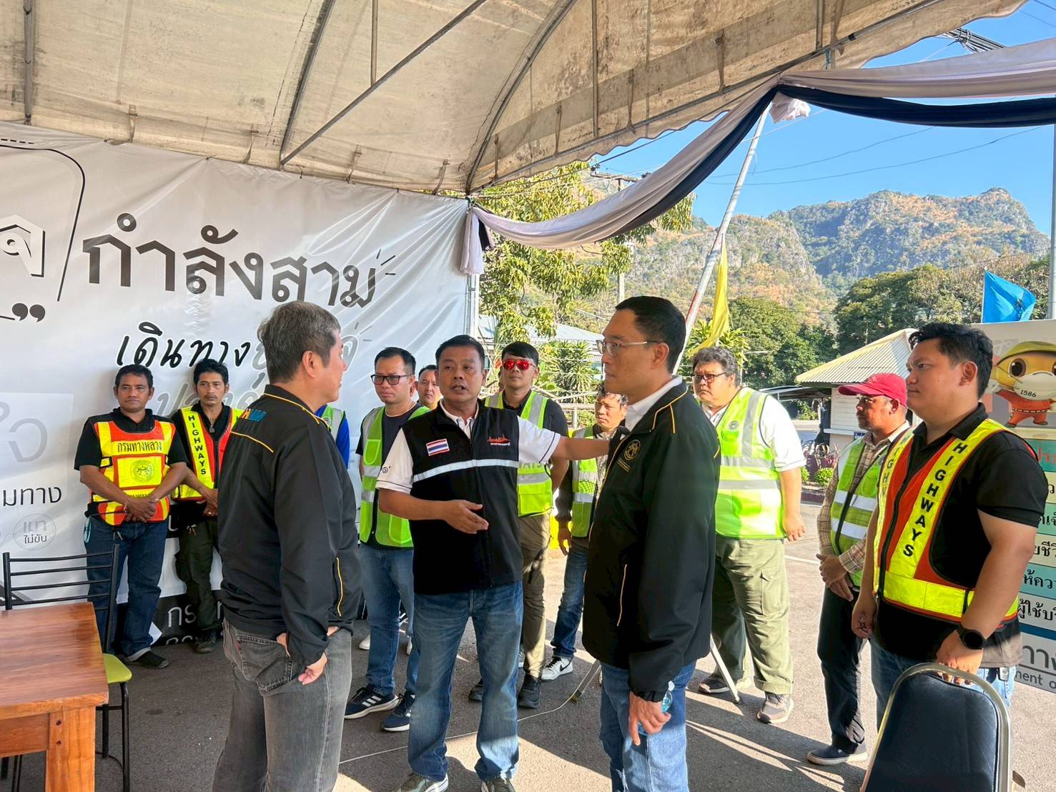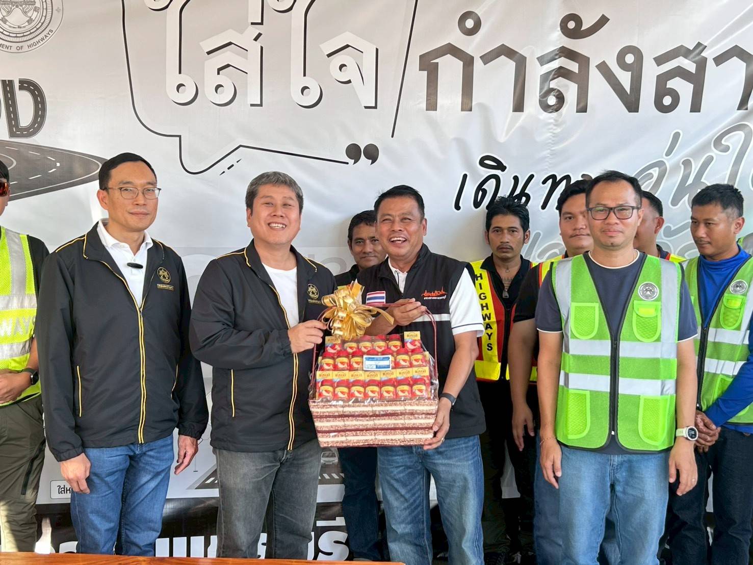 นายพรชัย ศิลารมย์ ผู้อำนวยการแขวงทางหลวงกาญจนบุรี พร้อมเจ้าหน้าที่ให้การต้อนรับ ณ จุดบริการ M81 กม.47+000 Lt.,Rt.