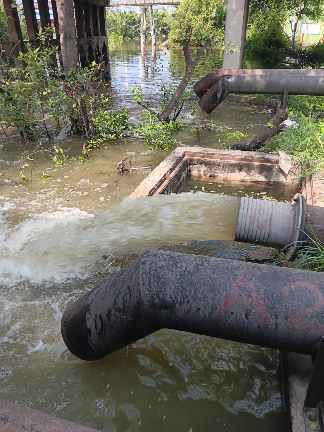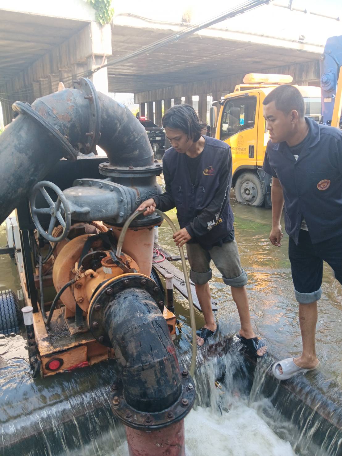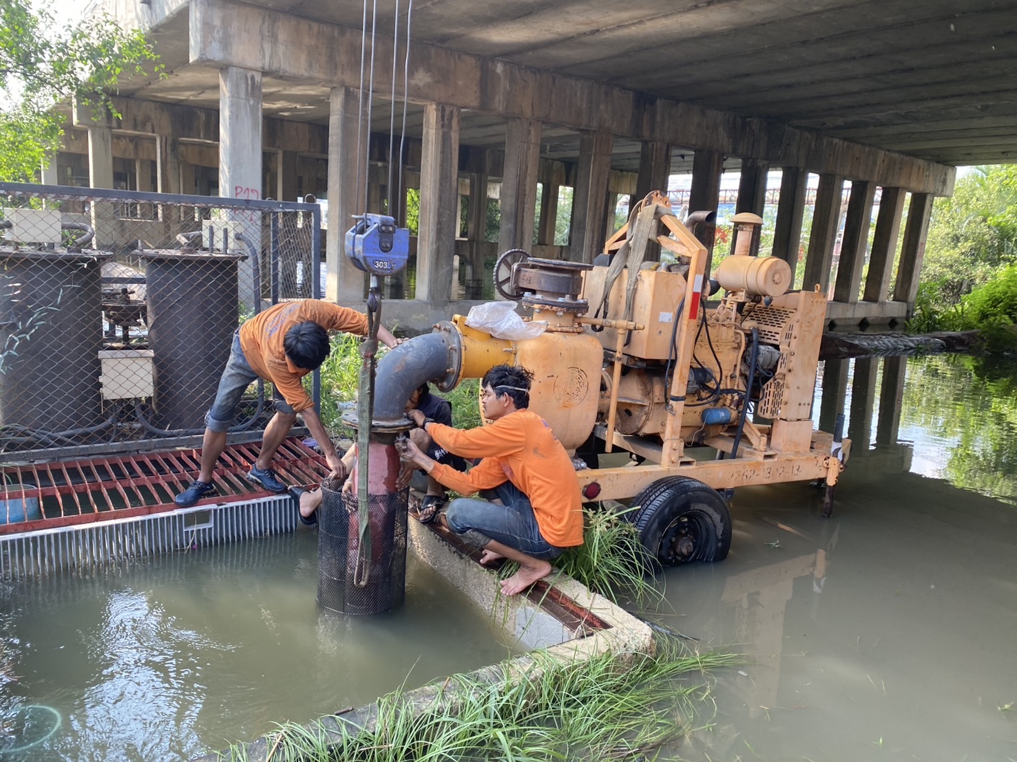 • ติดตั้งเครื่องสูบน้ำขนาด 12 นิ้ว จำนวน 4 เครื่อง และใช้เครื่องสูบน้ำพญานาคเพื่อเร่งสูบดึงน้ำกลับไปยังคลองขุดบ้านบ่ออย่างต่อเนื่อง พร้อมทั้งสูบพร่องน้ำบริเวณใต้สะพานคลองขุดบ้านบ่อ