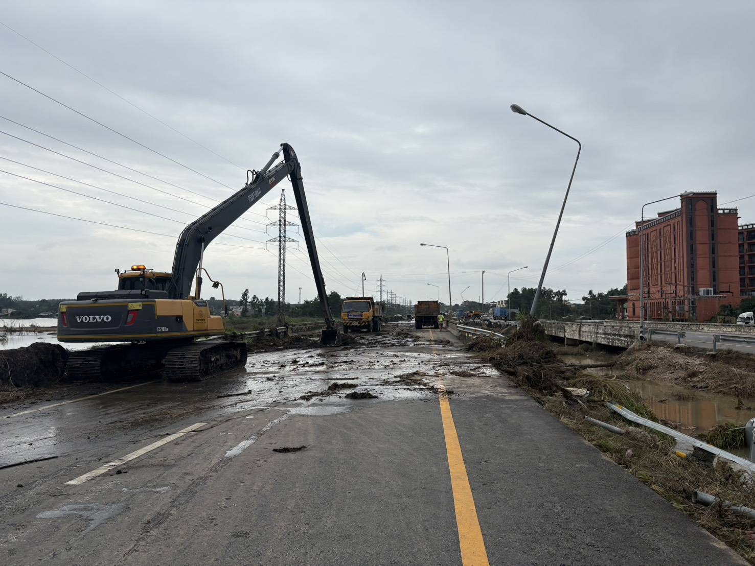 ปัจจุบัน เจ้าหน้าที่กำลังเร่งปฏิบัติงานในพื้นที่ที่น้ำลด เพื่อคืนสภาพผิวจราจรและโครงสร้างทางหลวงที่เสียหายในหลายจุด ได้แก่