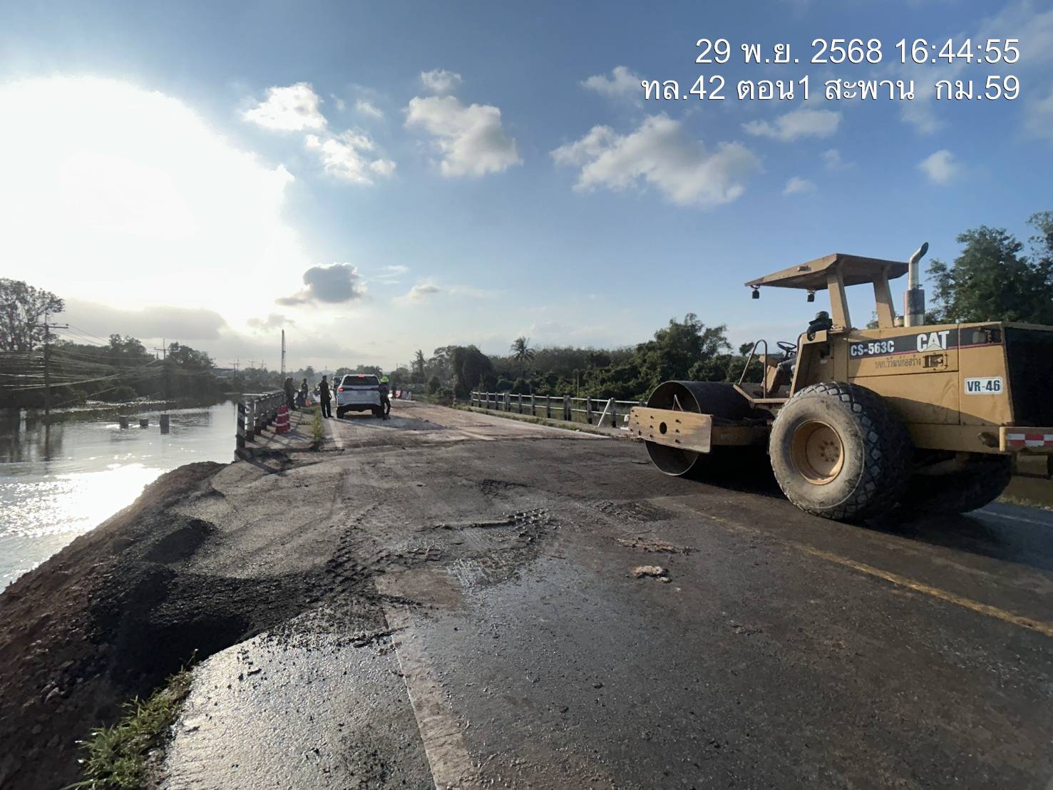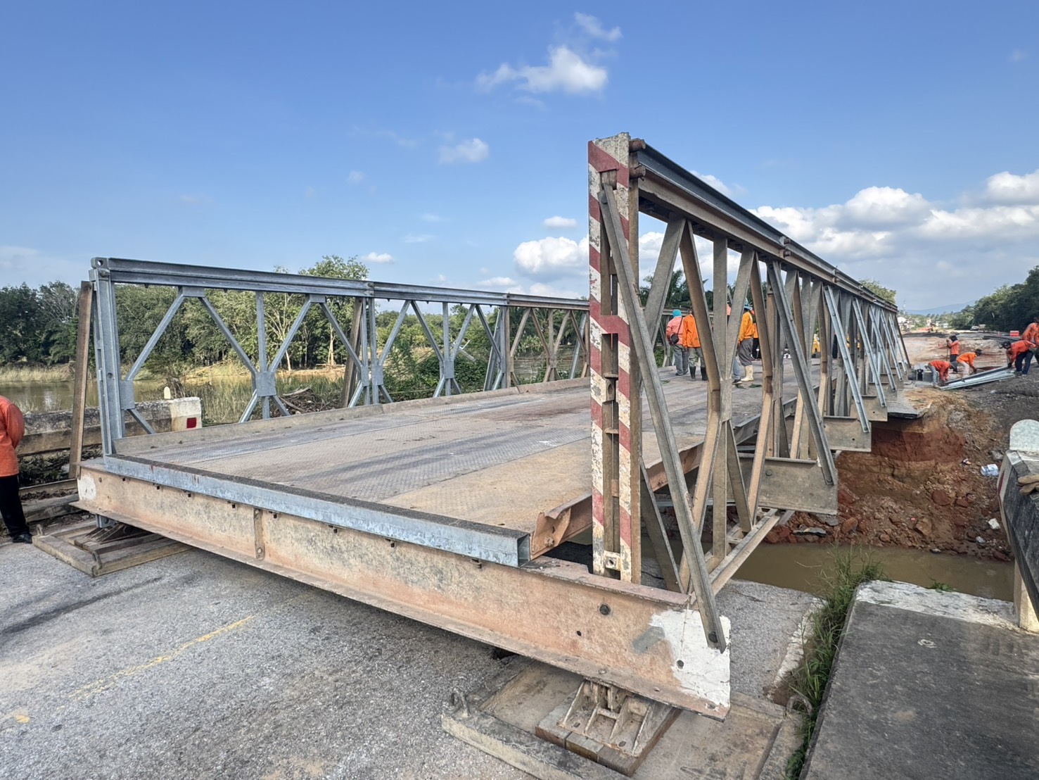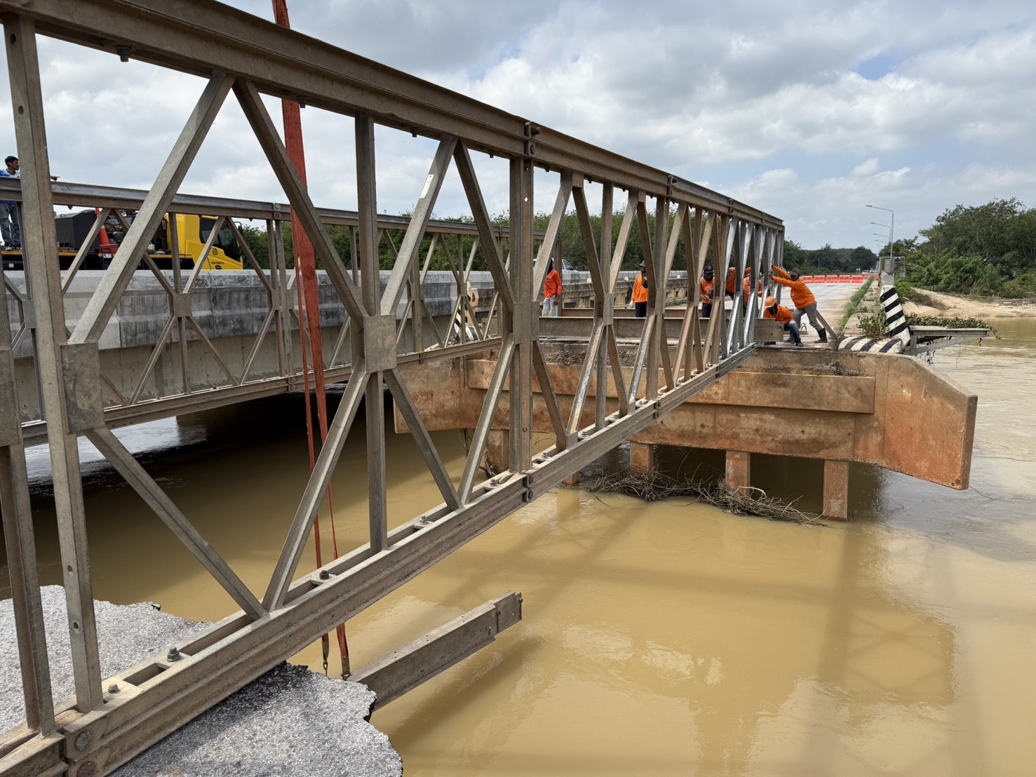 จุดที่ 2 ที่ กม. 4 ติดตั้งสะพานแบลีย์แล้วเสร็จ ความยาว 21 เมตร