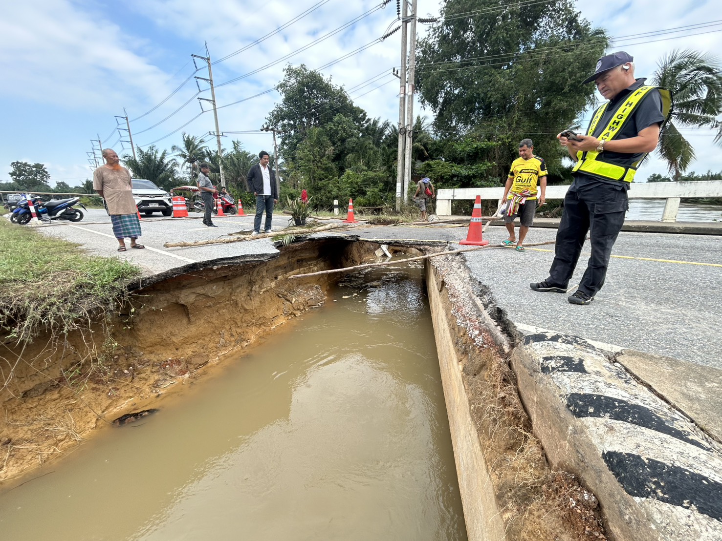 - การสำรวจความเสียหายสะพานบนทางหลวงหมายเลข 4085 ตอน ปากน้ำเทพา-ธารคีรี ก่อนเข้าดำเนินการในวันจันทร์ที่ 4 ธันวาคม 2568 จำนวน 2 จุด คือ: